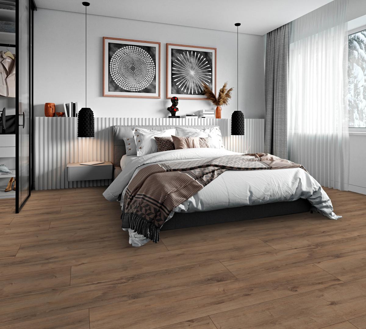 Piso laminado europeu para quem precisa de resultado de madeira premium com durabilidade real e execução rápida — mantendo o visual mais contínuo em áreas amplas.